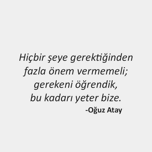 Hiçbir şeye gerektiğinden fazla önem vermemeli; gerekeni öğrendik, bu kadarı yeter bize.