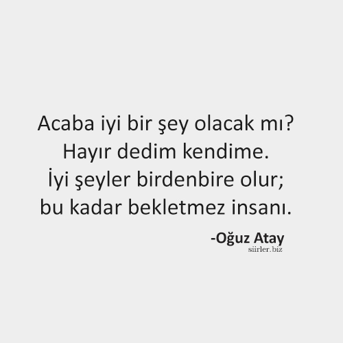 Acaba iyi bir şey olacak mı? Hayır dedim kendime. İyi şeyler birdenbire olur;bu kadar bekletmez insanı.