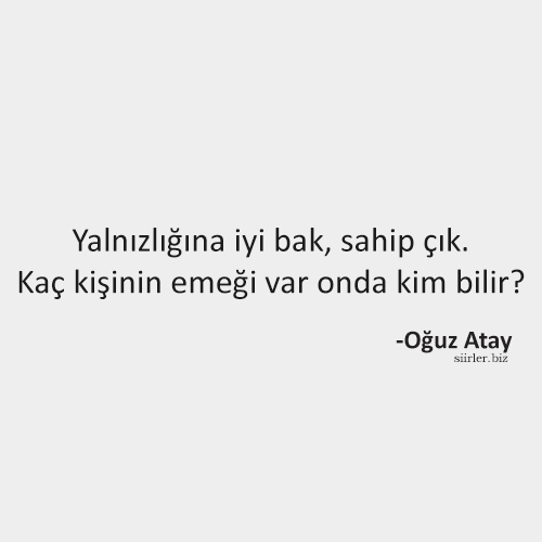 Yalnızlığına iyi bak, sahip çık. Kaç kişinin emeği var onda kim bilir?