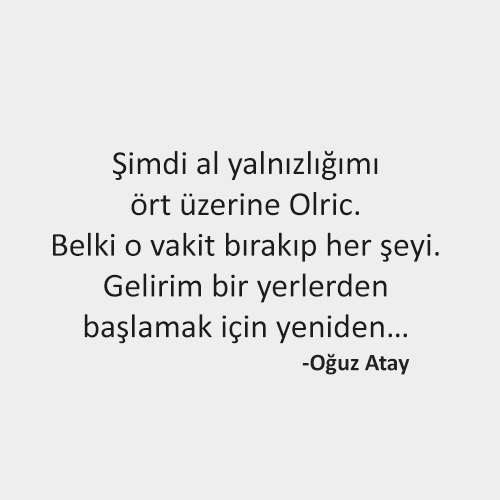 Şimdi al yalnızlığımı ört üzerine Olric. Belki o vakit bırakıp her şeyi. Gelirim bir yerlerden başlamak için yeniden…