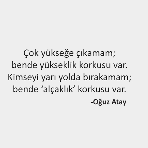 Çok yükseğe çıkamam; bende yükseklik korkusu var. Kimseyi yarı yolda bırakamam; bende ‘alçaklık’ korkusu var.