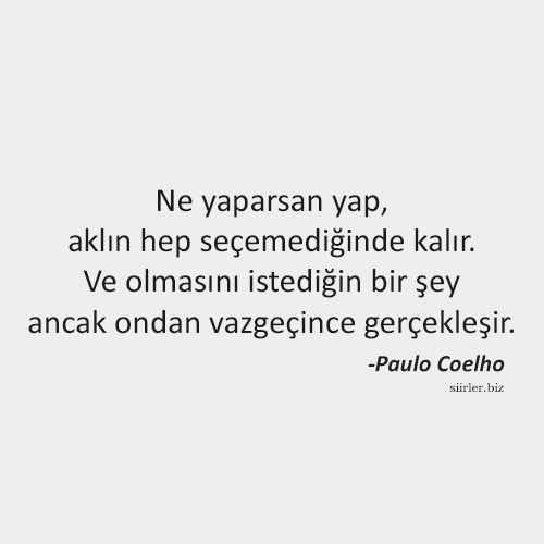 Ne yaparsan yap, aklın hep seçemediğinde kalır. Ve olmasını istediğin bir şey ancak ondan vazgeçince gerçekleşir.