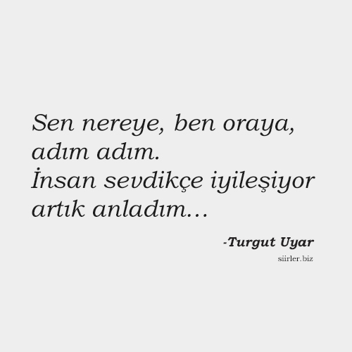 Sen nereye, ben oraya, adım adım. İnsan sevdikçe iyileşiyor artık anladım…