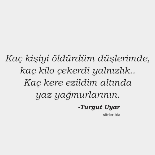 Kaç kişiyi öldürdüm düşlerimde, kaç kilo çekerdi yalnızlık.. Kaç kere ezildim altında yaz yağmurlarının.